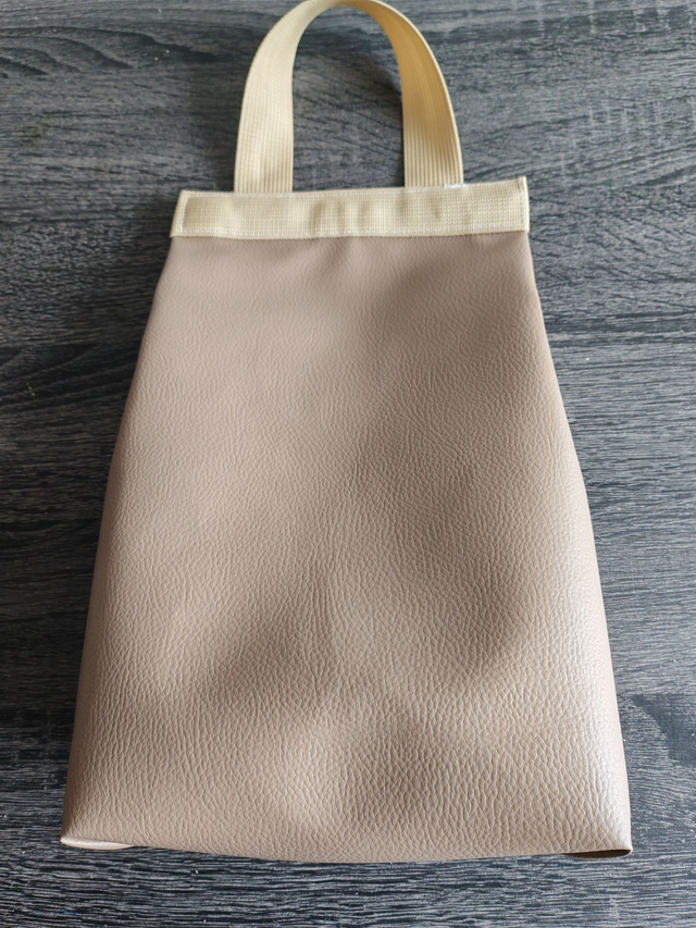 Trousse à toilette facile à transporter grâce à son anse et très facile à entretenir d'un coup d'éponge (réalisée en simili cuir et toile enduite).