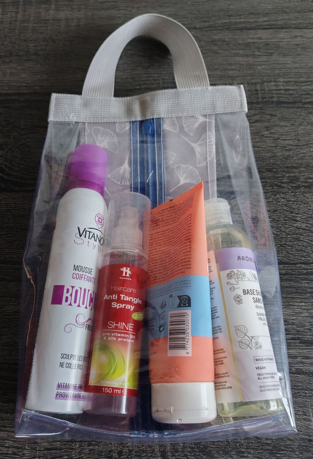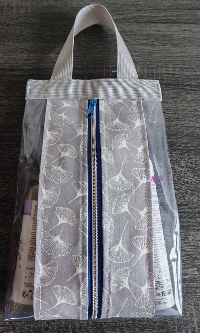 Trousse à toilette facile à transporter grâce à son anse et très facile à entretenir d'un coup d'éponge (réalisée en simili cuir et toile enduite). Elle permet de transporter des grands flacons.